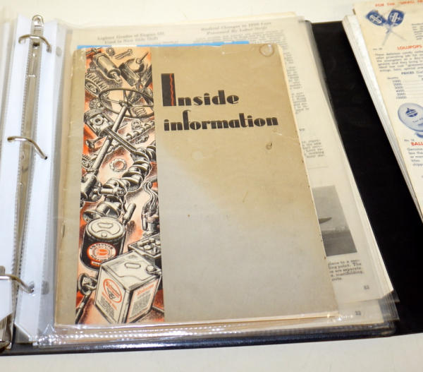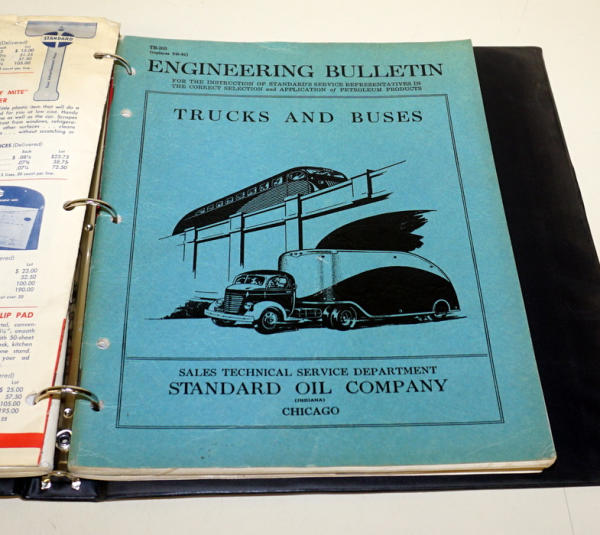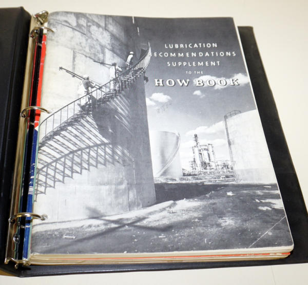 Lubrication guides in one book, other has various paper including catalogs, receipts, bill head & such, all to go