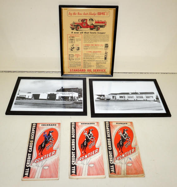 Maps all have wear, framed ads are nice, photos are reprints, all to go
