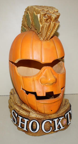about 2' tall, looks like a small battery op. speaker inside, but did not test, nice condition, unique piece of beer memorabilia