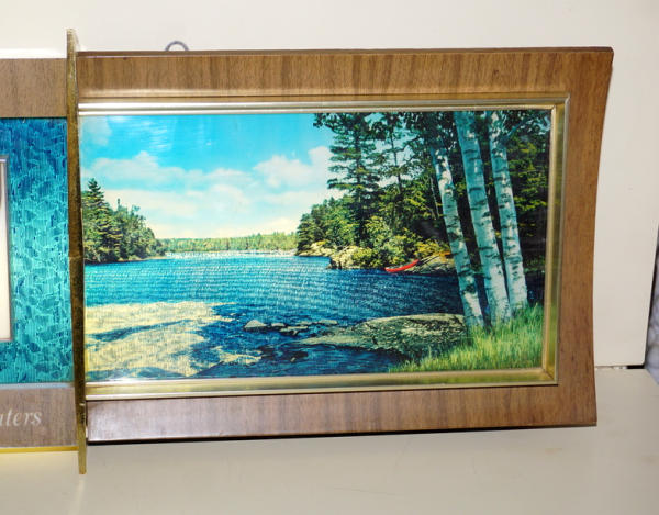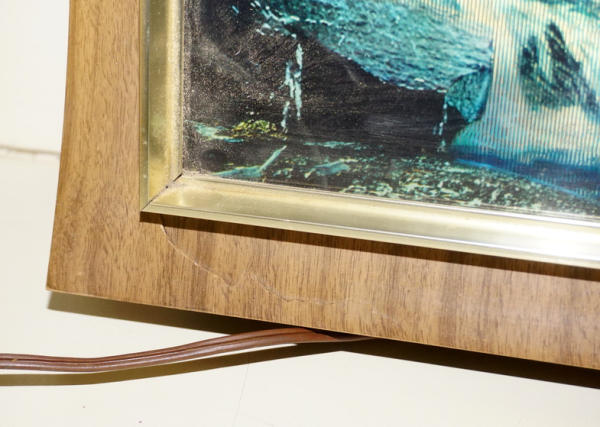 12.5"x41", has a small crack in the frame on the bottom left corner, lights up and works like it should, some normal wear