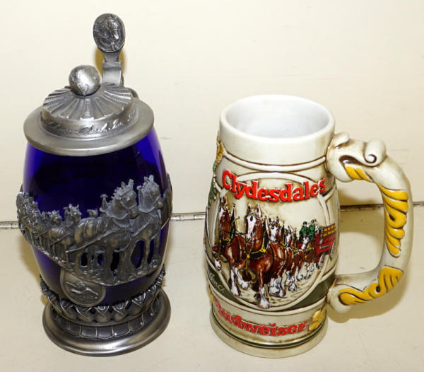 one stein is a really pretty cobalt blue & pewter Member's only stein, all nice condition, all tog o