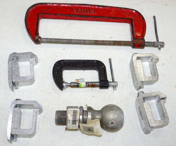 2 C Clamps, 4 pick up topper style clamps, 1 ball hitch, all to go