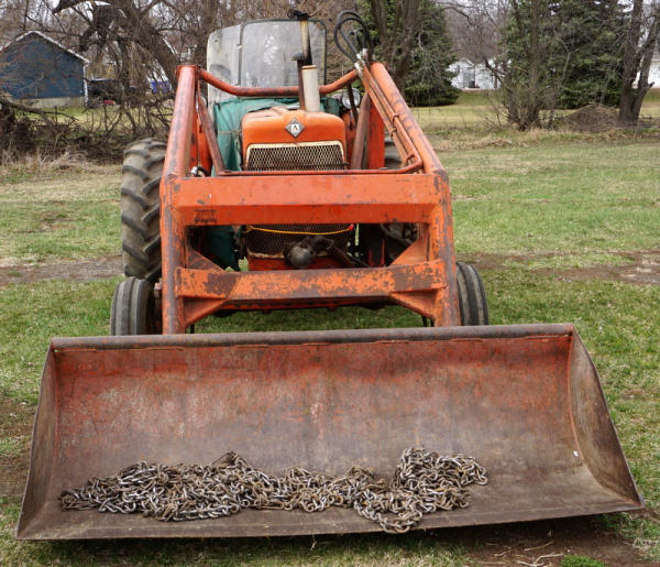 Tire chains, snap coupler 3pt,fenders, heat houser, Set up for moving snow, Runs