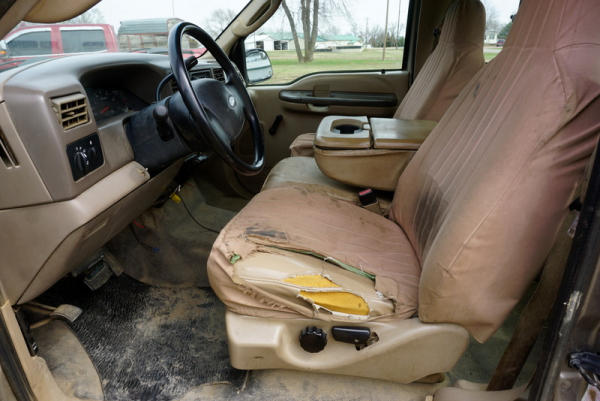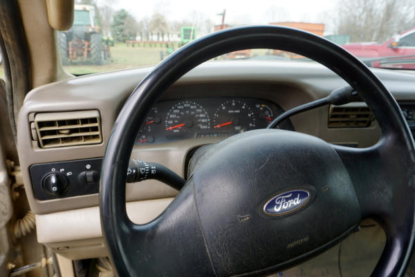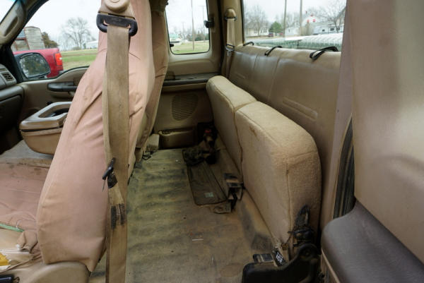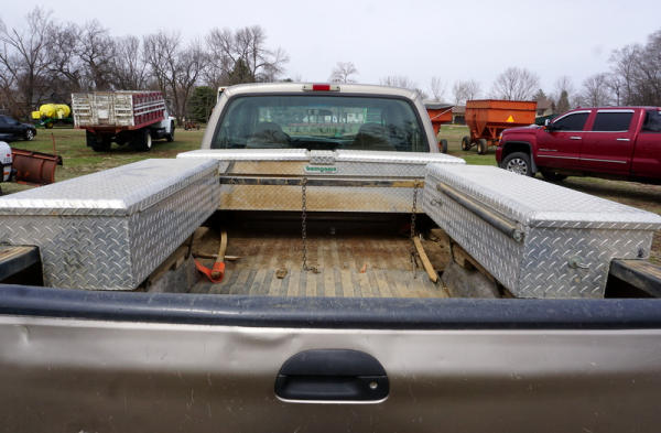 Runs, leather seats, crank windows, 3 tool boxes in the bed, body isn't the prettiest, tires 30-40% life left, miles unknown, Title