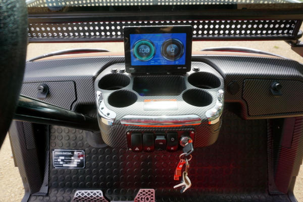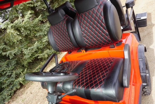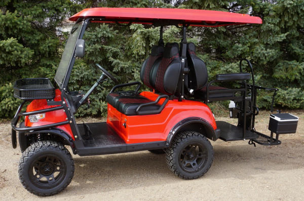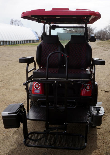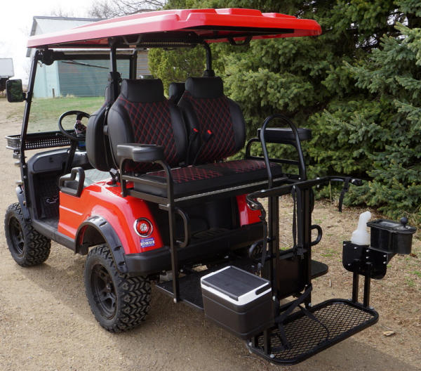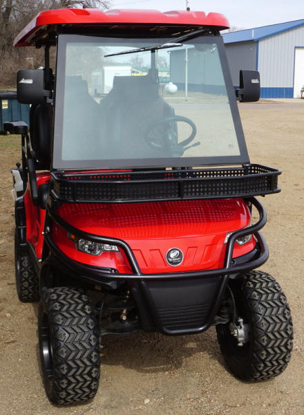 Street Legal Kit (Blinkers, Speedo, Mirrors, Head & Tail Lights), Front Bumper and Rack, Golf Bag Holder on the back, Glass windshield w/ whipper, Bluetooth Speaker, Very Nice Cart, will do 27mph!