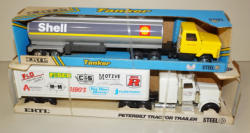 #949 - (2x) 1/25th scale Trucks--Peterbilt Farm Store Semi & IH S-Series Shell Tanker