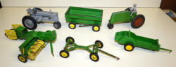 #955 - Box Lot of Vintage JD Toys--Sandblasted 60, repainted spreader, plus some played with implements