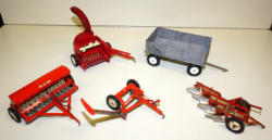 #918 - Lot of IH, White & Tru-Scale Implements--Spreaders, Wagons, Plows & more