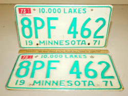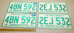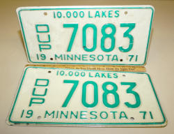 #524 - MN 1971 Duplicate Plates--matched pair--NOS
