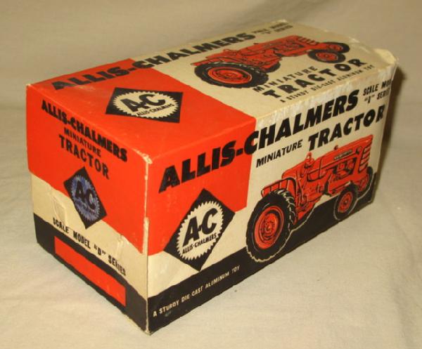 very hard to find toy, overall condition of the tractor is about 85%, box is missing one main outside flap and has some general wear,