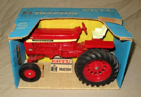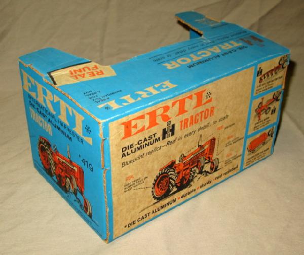 Mint toy, still has the muffler in the bubble on the side, box is nice and bright, just a small tear about the muffler hole, overall a great example of a hard to find blue boxed tractor