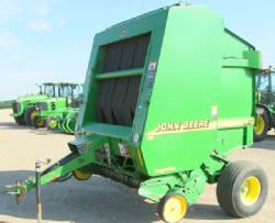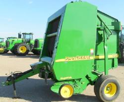 BALE-TRAK AUTOMATIC MONITOR, MEGAWIDE PICKUP, AUTOMATIC TWINE, 31X13.5-15 FLOATATION TIRES, HYDRAULIC PICKUP, BALE PUSHBAR, PICKUP GUAGE WHEELS, RIGHT DOOR HAS A CREASE IN IT BUT IT STILL LATCHES; SN# E00567X190443; Located: James River Equipment, Huron, South Dakota. Contact Tom Rook (605) 256-4575 or email [email protected]; JD Control #01603228