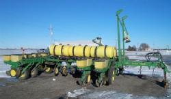FLEX-FOLD FRAME, VACUUM METERING SYSTEM, 3 BUSHEL HOPPERS, TRU-VEE PLANTING UNIT, LIQUID FERTILIZER, DAWN COULTER COMBOS ROW CLEANERS, CORN & SOYBEAN SEED DISKS, NON-ADJUSTABLE DOWN PRESSURE, E-SET CORN DISKS, MARKERS, FERTILIZER IN ROW W/ PUMP AND TANKS ON PLANTER, HAD OVER $9,000 OF WORK DONE IN MARCH 2008 INCLUDING WHEEL FRAME BUSHINGS, SN#H07200D655201; Located: James River Equipment, Huron, South Dakota. Contact Tom Rook (605) 256-4575 or email [email protected]; JD Control #01603274