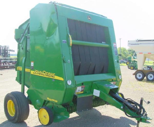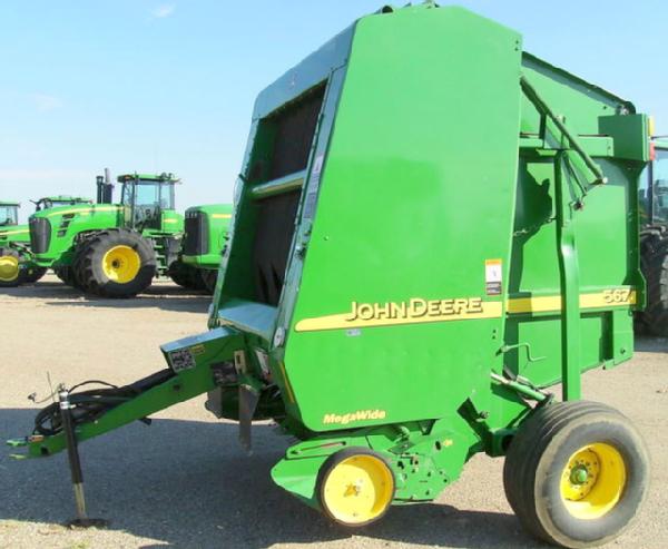 BALE-TRAK AUTOMATIC MONITOR, MEGAWIDE PICKUP, AUTOMATIC TWINE, 31X13.5-15 FLOATATION TIRES, HYDRAULIC PICKUP, BALE PUSHBAR, PICKUP GUAGE WHEELS, RIGHT DOOR HAS A CREASE IN IT BUT IT STILL LATCHES; SN# E00567X190443; Located: James River Equipment, Huron, South Dakota. Contact Tom Rook (605) 256-4575 or email [email protected]; JD Control #01603228