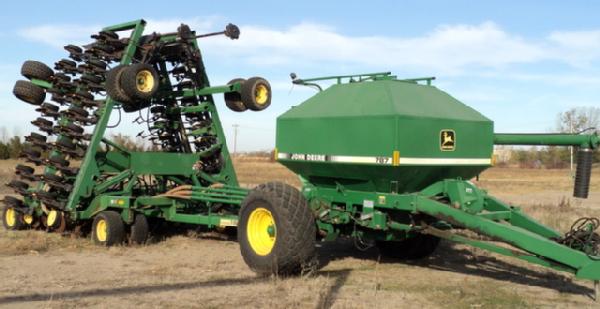 TOW BETWEEN SINGLE SHOOT, 3 SECTION, NO TILL, 7.5" SPACING, HAUKAAS MARKERS (LEFT HAND SIDE NEEDS SOME WORK), 787 2-TANK CART, NO BLOCKAGE, 60/40 TANK SPLIT, DUALS ON WINGS, FILL AUGER, MONITOR; SN# H01850X670132; Located: James River Equipment, Huron, South Dakota. Contact Tom Rook (605) 256-4575 or email [email protected]; JD Control #01603368