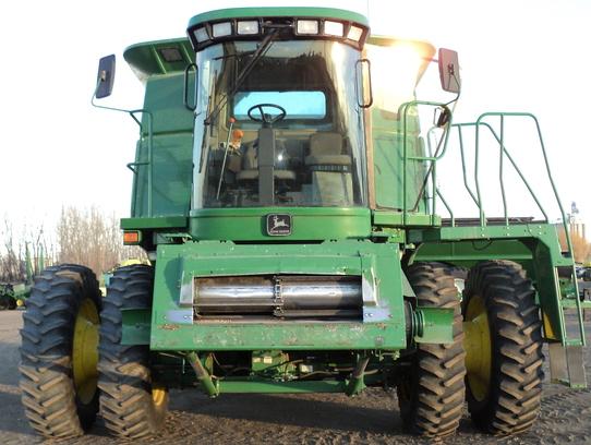 2WD, LEVELLAND, 18.4X42 KIRCHNER DRIVE DUALS WITH STUBBLE DAMAGE, 16.9X26 STEER TIRES, STRAW CHOPPER, BENT SLATS IN FEEDERHOUSE CHAIN, DIAL-A-MATIC, DIAL-A-SPEED, GRAIN LOSS MONITOR, YIELD MONITOR, ROCK TRAP, JOHN DEERE FACTORY BIN EXTENSION, LARGE WIPER, CHOPPER HAMMER USED ONE SEASON, FEEDERHOSUE DRUM HAS ROCK DENTS, UNLOAD AUGER IS MISSING DISCHARGE BOOT, HOUR METER READS 4148/2805 HRS; SN# H09650S686356; Located: James River Equipment, Huron, South Dakota. Contact Tom Rook (605) 256-4575 or email [email protected]; JD Control #01603387