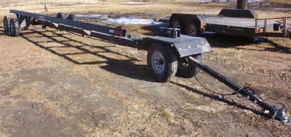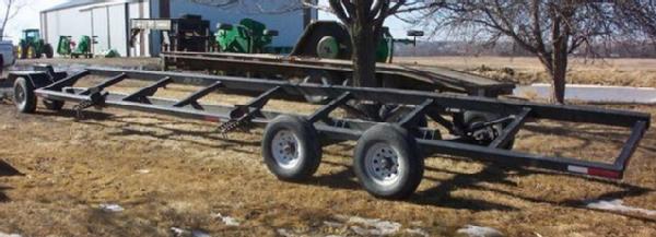 32' HEADER TRAILER, TANDEM REAR AXLE, TELESCOPING TOUNGUE W/ BALL, TIE DOWNS, FRONT AXLE IDLER, REAR AXLE - 1 IDLER &1 BRAKE, ADJUSTABLE SLIDER MOUNTING BRACKETS; SN#6253; Used but never sold, used for dealer delivery & pickup. Located Platte Valley Equipment, Wahoo, Nebraska. Contact Mike Fuchs 1-800-844-8818; JD Control #036253