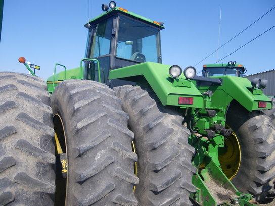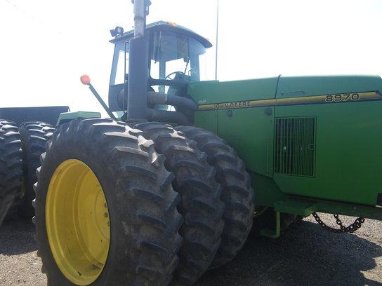 HOUR METER READS 6748 HRS, 12/3 TRANS, 20.8R42 DLS, 4SCV, AM-FM/STEREO CASSETTE RADIO, SUPPLEMENTARY ROOF LIGHTS, FIRESTONE TIRES; SN# RW8970Z003113 Located: Jamestown Implement, Jamestown, North Dakota. Contact Mikel Grondahl at 1-800-247-0691 or email [email protected]; JD Control # 6A003113