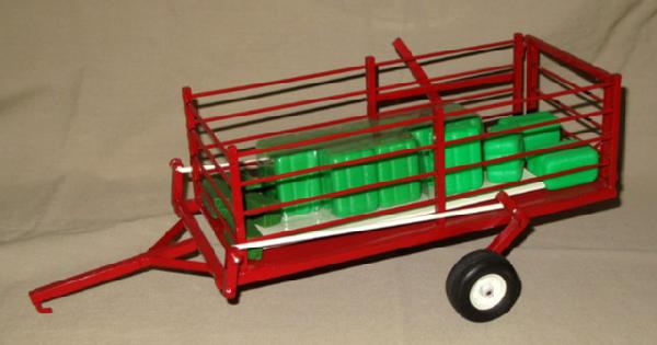 about 15" long, all metal, nicely built, includes a load of plastic bales