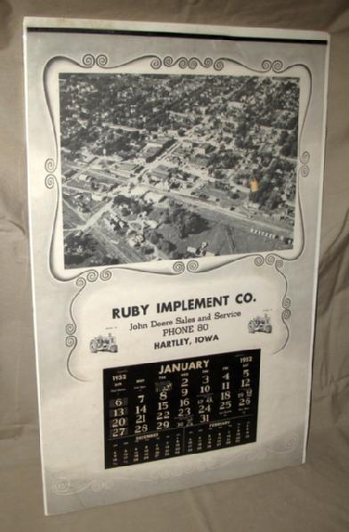 22"x14", full calendar pad, has two "B" Tractor graphics by the dealer name. Has been shrink wrapped to protect