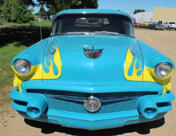 322 Nailhead V8, 3spd Manual, 42K miles, Aqua Pearl paint with hand painted flames, custom interior, dual exhaust, custom stereo, dual power split bench seat, runs and drives excellent, super sharp!