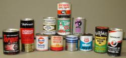 #311 - (12) 6oz & Larger 2cyl Oil Cans--Johnson, Wizard Tiller, Evinrude, Arctic Cat and more
