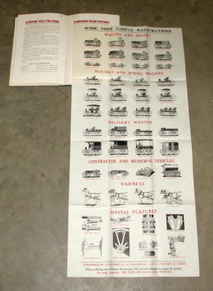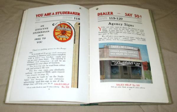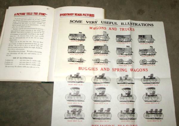 neat piece, color pages of wagons, signs, goat wagon and more! Includes all the stuff a dealer could order for brochures, newspaper ads, and premiums, 80+ pages and also a full stack of order blanks. A must have for the Studebaker fan!