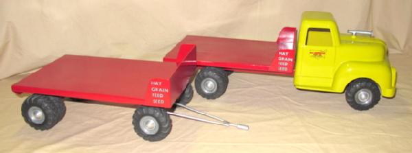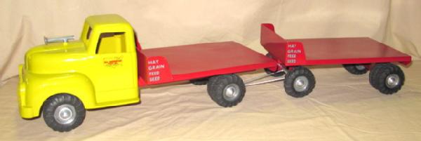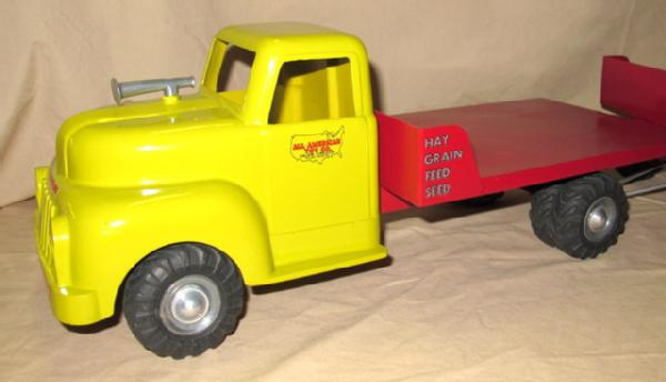 another nicely restored All-American, about 3' long when hitched, a few dents in the flatbed, but still displays great