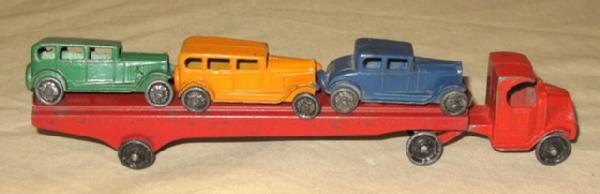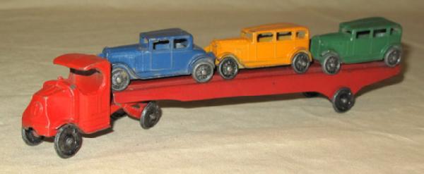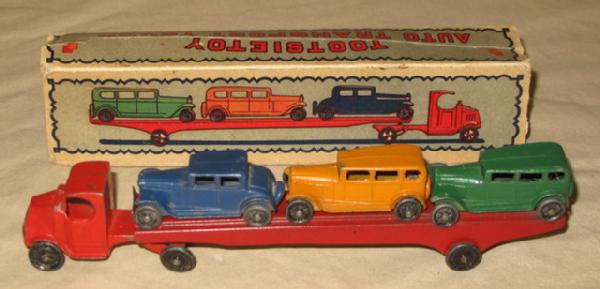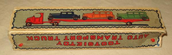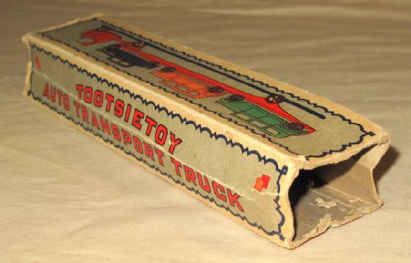 Toys rate about 80% overall, box is missing all the end flaps, early Tootsie Toy piece with a scarce box