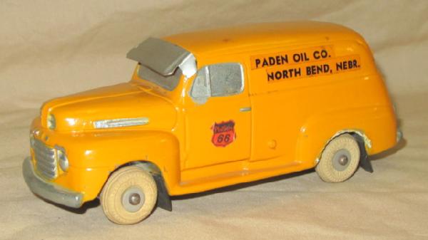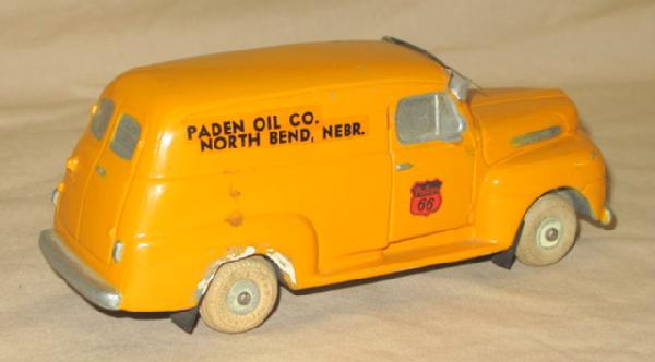 Great original paint, has a homemade sunvisor added, overall paint is 90%, made by National Products, very rare promo with Soukup's Home town advertising!