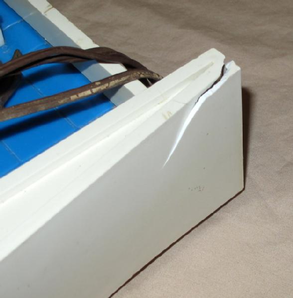 23" tall, has a pretty large break in the bottom, has some soiling and wear