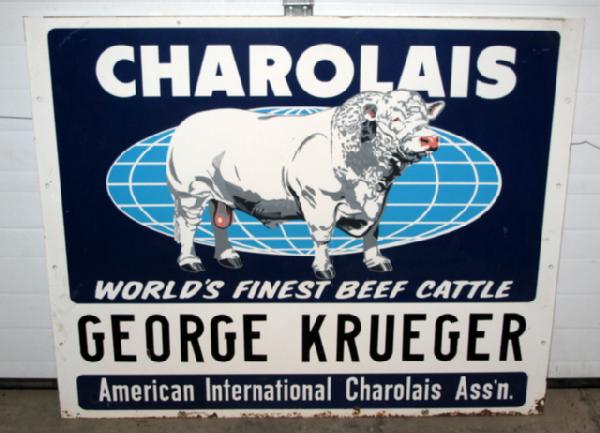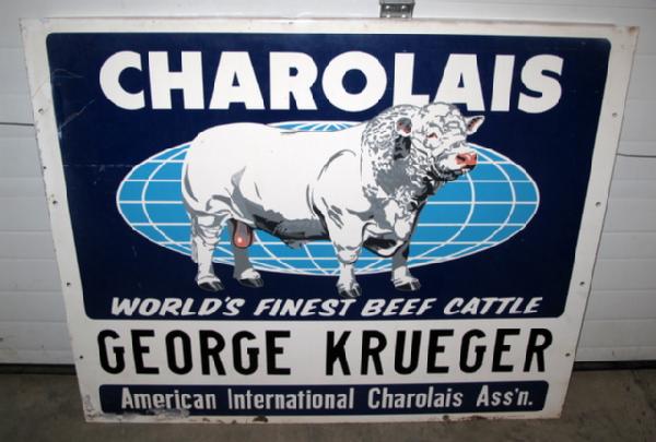 Great sign, measures about 40"x48", both sides are about 8 or better condition, super color, scarce sign