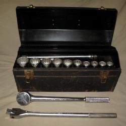 all John Deere Pieces, no deer logo, just reads "JOHN DEERE" on the tools, most are near mint, some sockets show some wear, toolbox rates 7 condition, sells as a set for one money