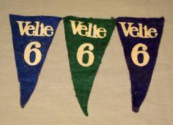 dated 1954, 17"x17", great color, has a tape burn by the big "C", otherwise nice with some light wear. Very few survived