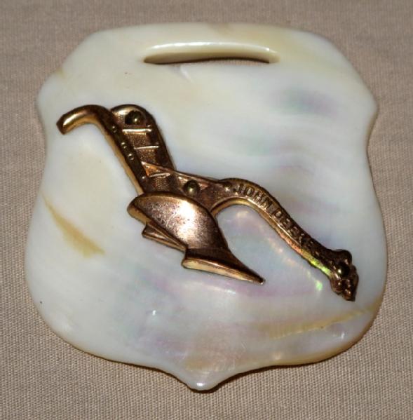 Issued only to JD Blockman, much larger than the normal JD MOP fob, 2" tall, tiny chip in the strap hole, otherwise near mint, great piece, only the 2nd one we have ever sold!