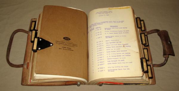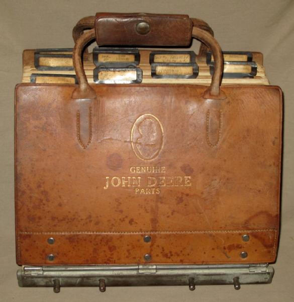 unique heavy leather JD binder with about 3" thick of manuals and parts books, has wear