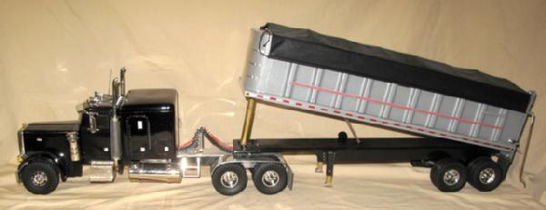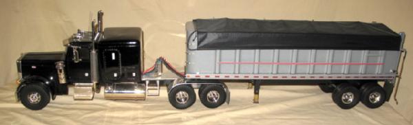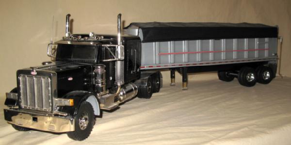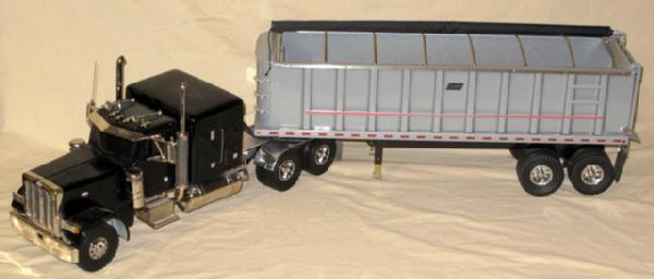 great piece, large 1/16th scale, assembled is over 40" long! Semi is Resin cast with lots of custom pieces added, trailer is all steel and hand built, nearly salesman sample quality, super truck! Comes in 2 boxes