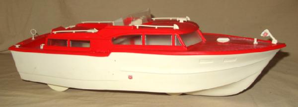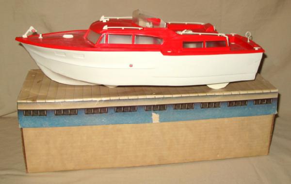 nice clean toy, did not test, includes paperwork and box inserts. 18" long, box is 2-pieces and could be used as a pier for the boat