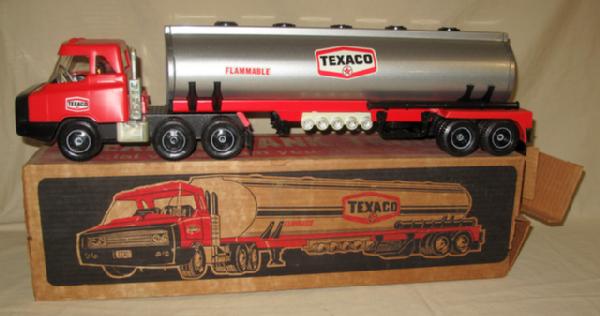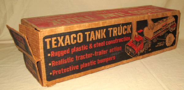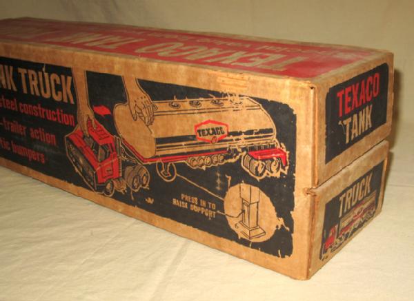 Plastic Cab w/ metal trailer, Mint Toy, box is dry rotted and has general wear