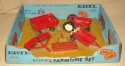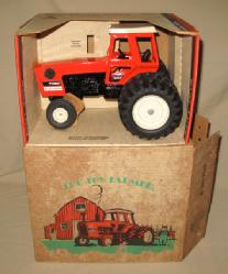 near mint toy, has a nice metallic decal on the dump box canopy from a LeMars, IA dealer, box has some tape burn and marker writing on the top, box rates 7.5 condition