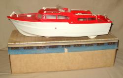 nice clean toy, did not test, includes paperwork and box inserts. 18" long, box is 2-pieces and could be used as a pier for the boat