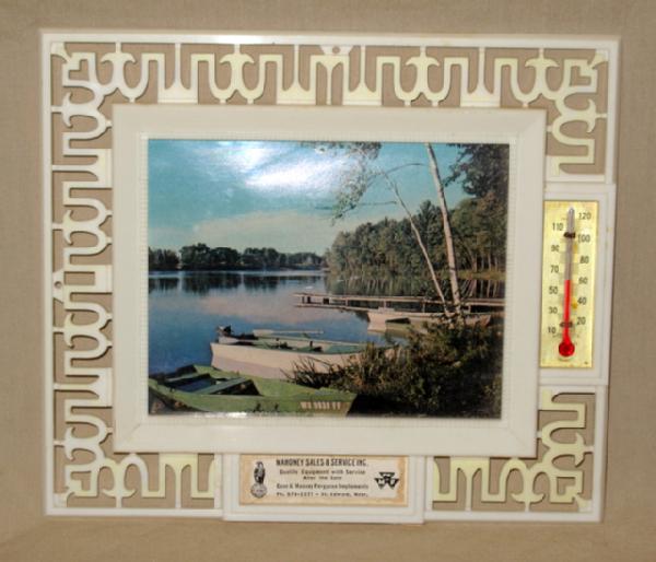 has thermometer in frame, about 8"x6.5"