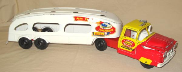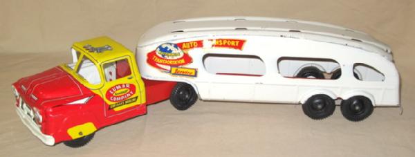 23" long, has the ramp, no cars, decals flaking some, rates 90% paint