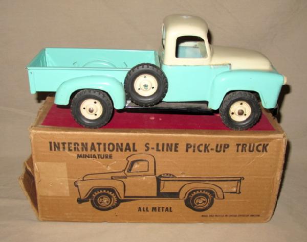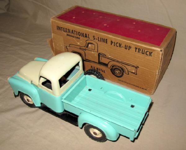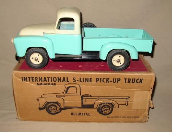 Very nice toy, rates near mint condition! Only light scuffs on the cab top from the box. Box is missing an end flap and has some general wear, but still good condition, box rates 7.5, nice piece