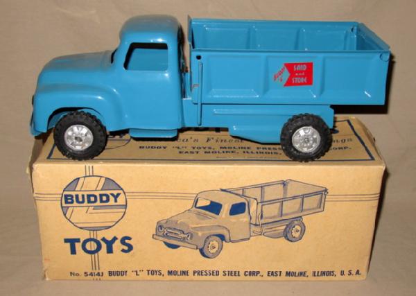 Toy is near perfect mint! A few light box scuffs, but overall is A-1. Box is missing an end flap and has some light wear, but this style of Buddy L box is hard to find
