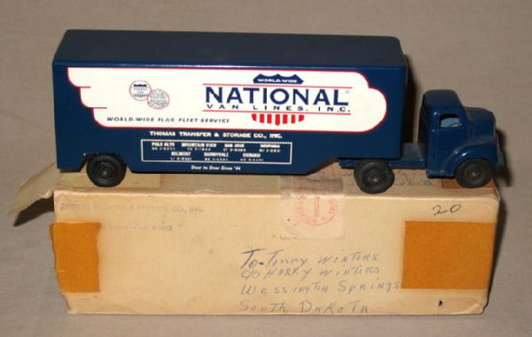 near mint original, plain brown box has some wear, about 1/64th scale, hard label to find, made in Ralston, NE