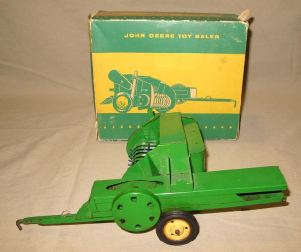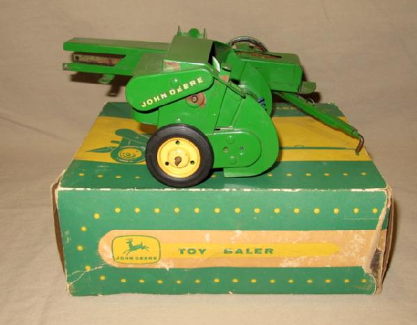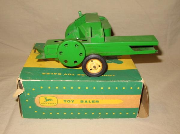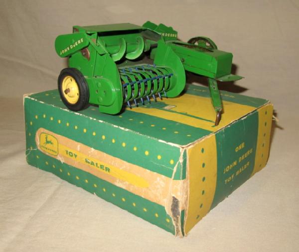 Toy is nice, 95% or so with some wear around the hitch, missing the door at the end of the bale chute, box has some tape and overall general wear, box rates 7 condition