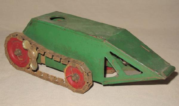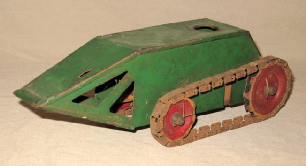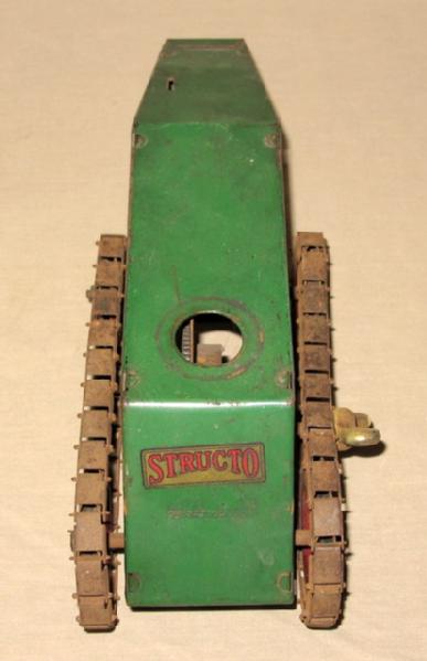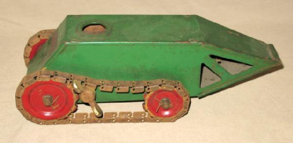 11" long, missing Turret, tracks are rusty, has a 1920 pat date on the front, mech works