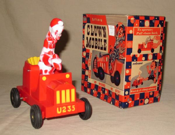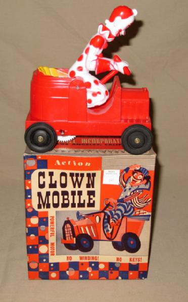 dated 1952 on the box, mint toy, mint box, 6" long, all plastic with a friction mech