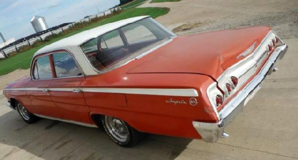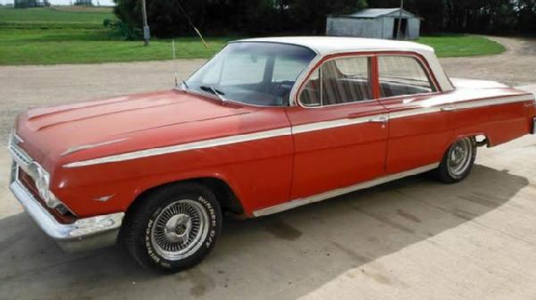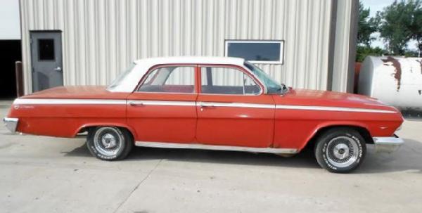 283, 3spd auto, miles unknown. Engine & Trans both OH with only 200 miles on them. Good straight body, light rust, trunk damage, bumpers good, needs paint. Interior is fair to poor condition and needs work. New rims & tires, original hubcaps are with the car, Disc brakes, hoses, alternator, plus, plug wires, battery & Exhaust (headers) all new